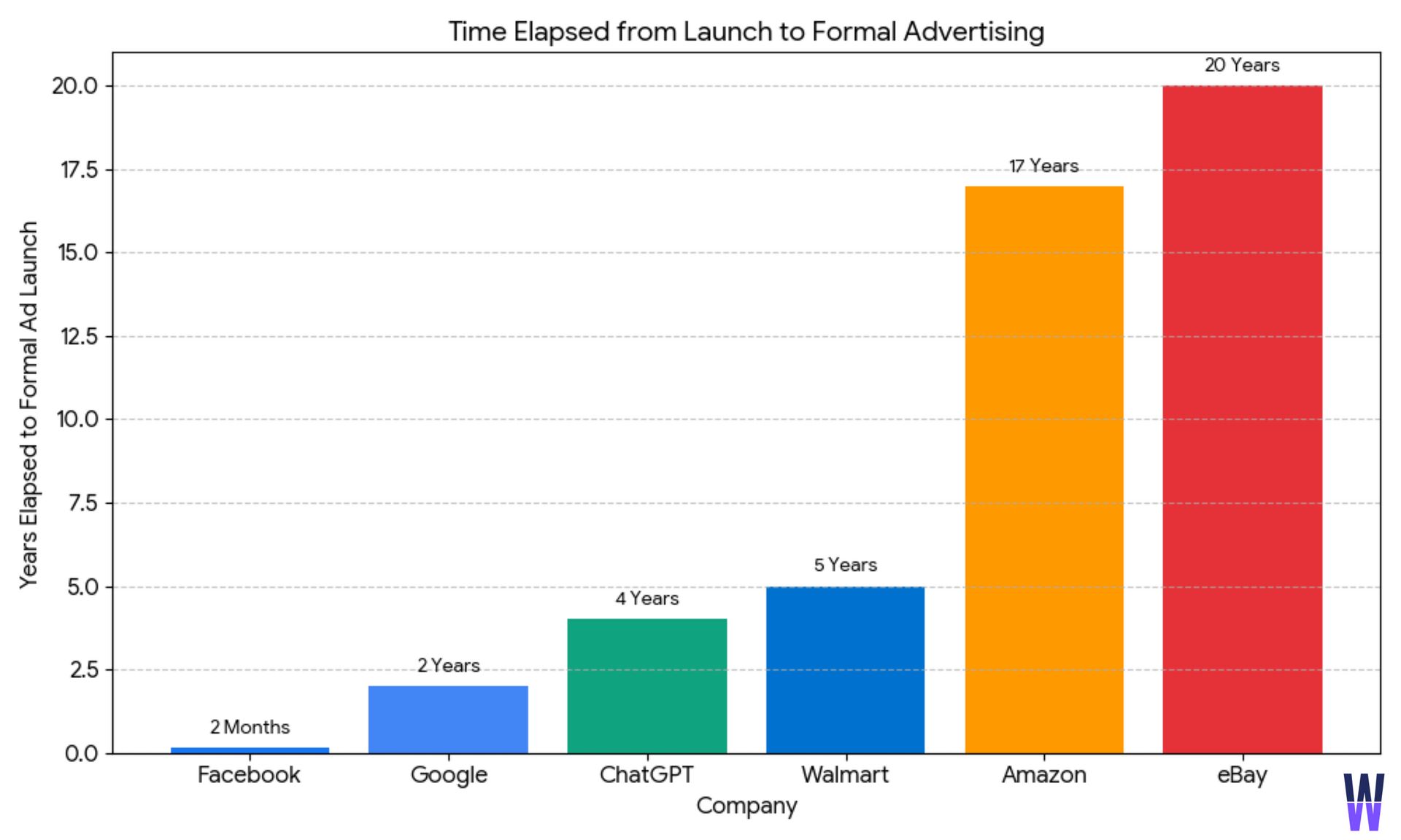 Amazon, Google, Walmart, and eBay all took between 2 and 20 years to add advertising to their platforms.